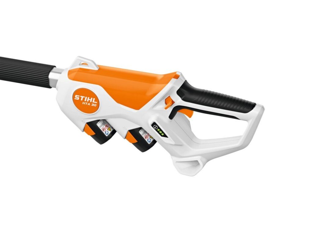 STIHL HTA 30 se snadno ovládá díky ovládací rukojeti s prvky měkkého úchopu a ergonomickému zajišťovacímu mechanismu . Pro pohodlnou práci je hřídel vybavena pogumovaným pouzdrem rukojeti , které umožňuje rychlé a flexibilní nastavení podél hřídele v závislosti na pracovní výšce. Oboustranný zajišťovací mechanismus, ergonomický design rukojeti a velmi nízká hmotnost 3,6 kg činí práci s HTA 30 vysoce flexibilní, efektivní a bez námahy. Další vlastností STIHL HTA 30 je robustní integrovaný stojan, který chrání nářadí před nečistotami a vlhkostí. HTA 30 je také vybavena závěsným poutkem pro připevnění volitelného ramenního popruhu a závěsným poutkem pro pohodlné uložení na stěně.