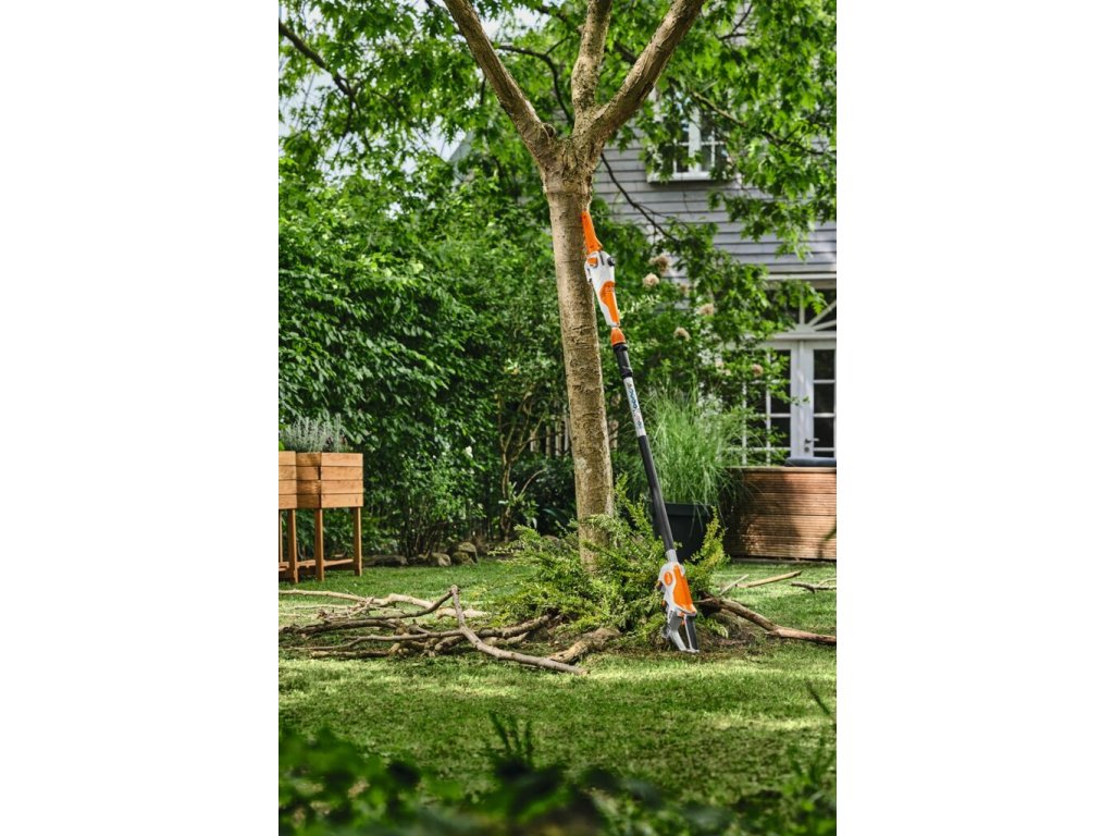 Ergonomicky navržená a intuitivně ovládaná akumulátorová vyvětvovací pila STIHL HTA 30 umožňuje efektivní a pohodlnou práci při údržbě pozemků, zahrad a stromů. Díky beznástrojové, pevné teleskopické hřídeli a automatickému napínání řetězu s integrovaným pružinovým mechanismem poskytuje STIHL HTA 30 účinnou oporu při prořezávání vysokých větví, údržbě keřů a odstraňování odumřelého dřeva. Napnutí řetězu lze optimálně nastavit jediným pohybem pouhým otevřením a zavřením krytu řetězového kola – rychlé a intuitivní nastavení pro minimální přerušení práce . Plynule nastavitelná teleskopická tyč pily STIHL HTA 30 se vysouvá do délky 280 cm.