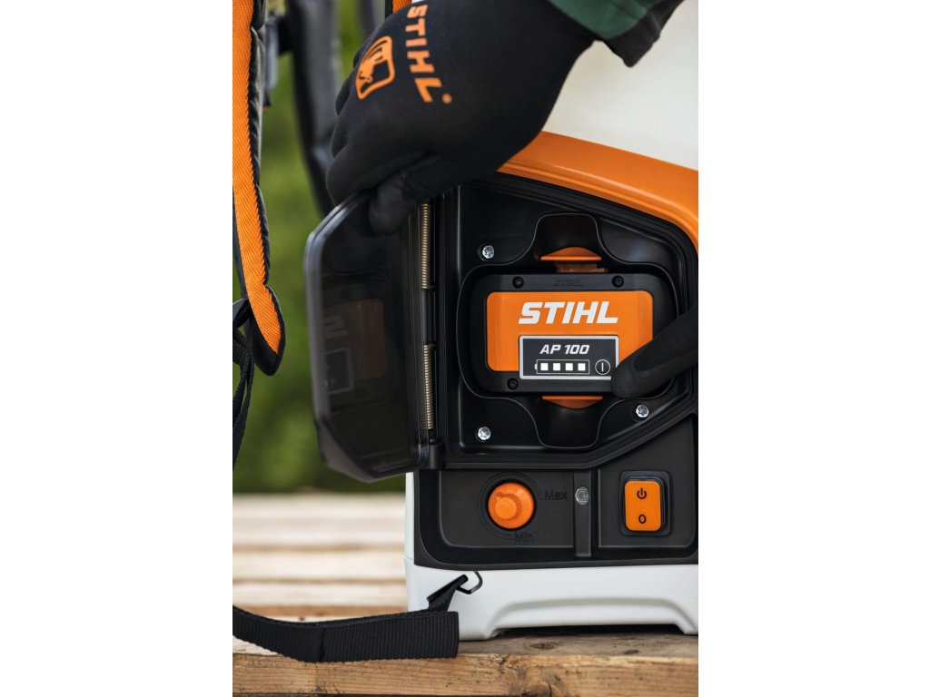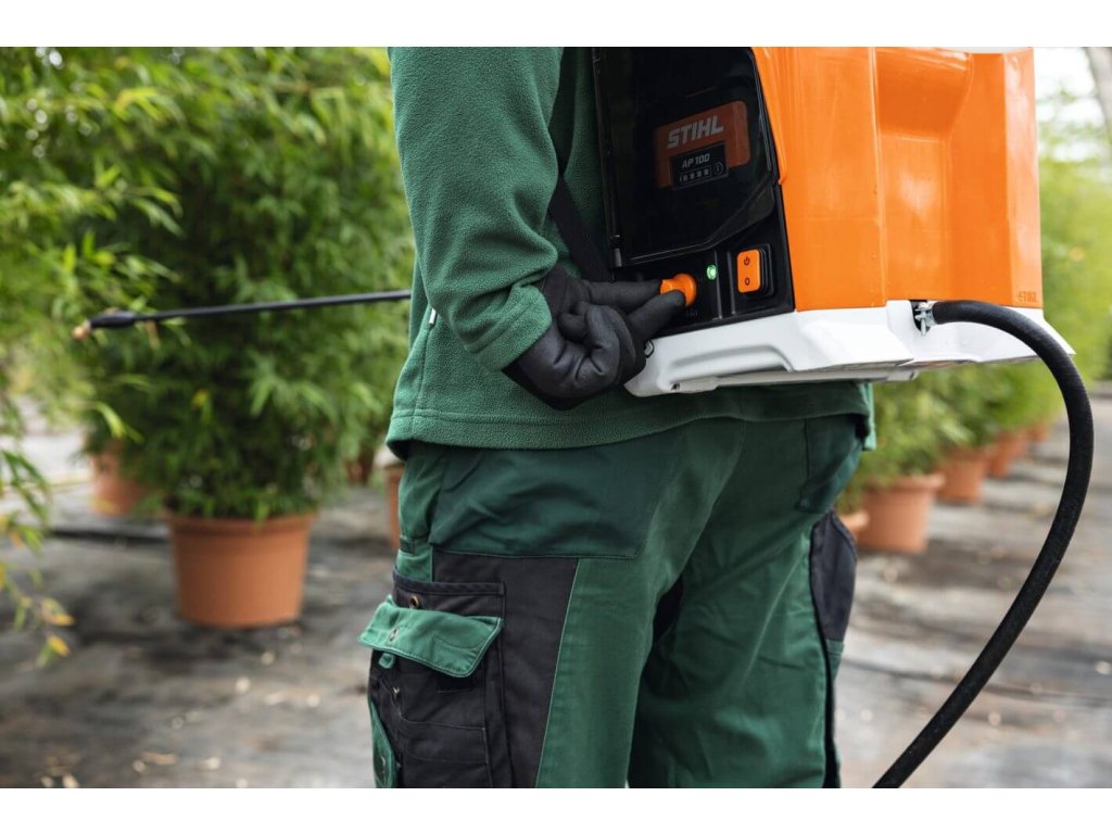 Praktické a efektivní: Akumulátorové přístroje STIHL AP jsou ideální pro ty, kdo hledají efektivní a ekologické řešení. K dispozici je také volitelné pouzdro na bederní pás pro bezpečné uložení stříkací trubice, což zajišťuje snadné používání a maximální komfort.