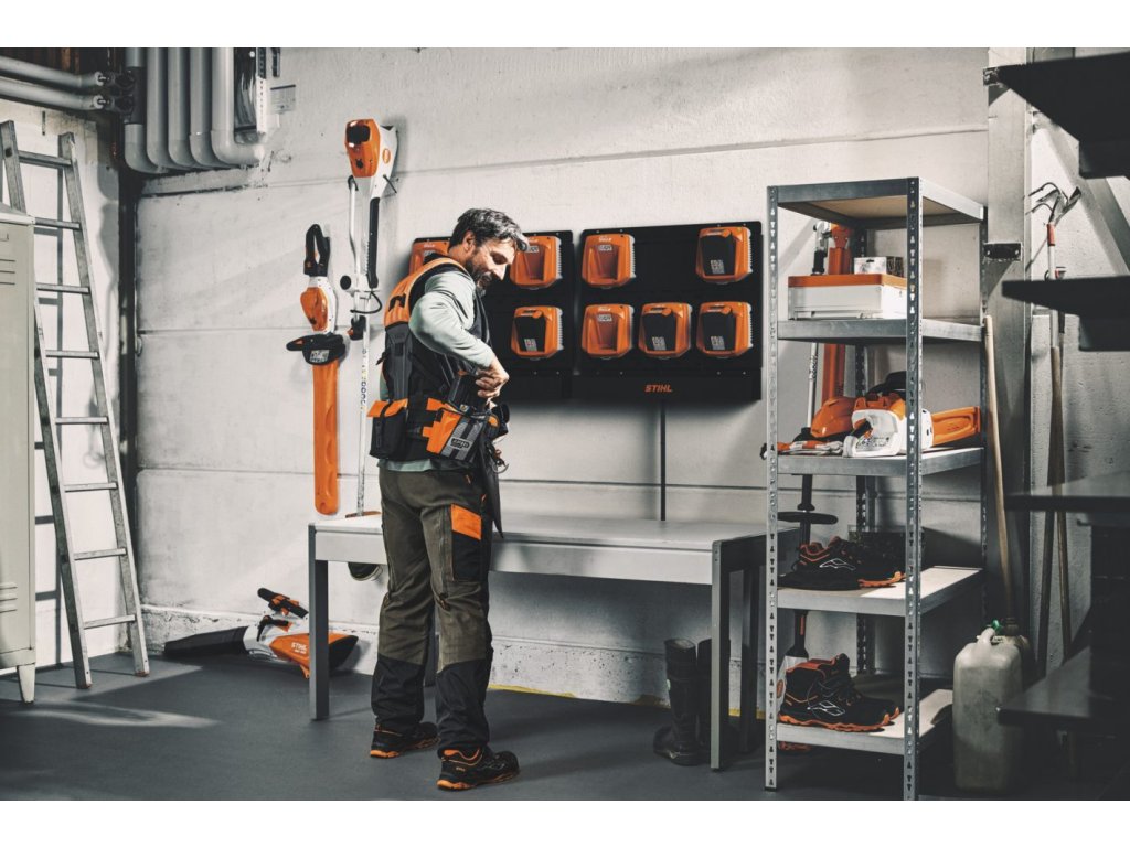 - Přehlednost a organizace: Umožňuje přehledně uložit až 8 standardních nabíječek nebo až 6 rychlonabíječek STIHL, což šetří prostor a zjednodušuje práci.
