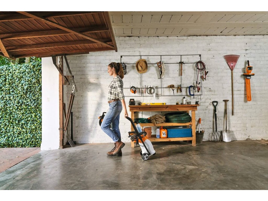 - Snadná přeprava díky integrovanému podvozku a dlouhé rukojeti