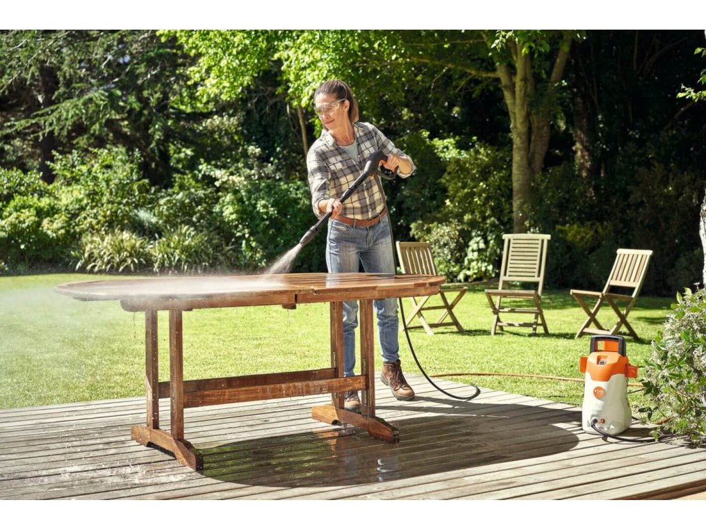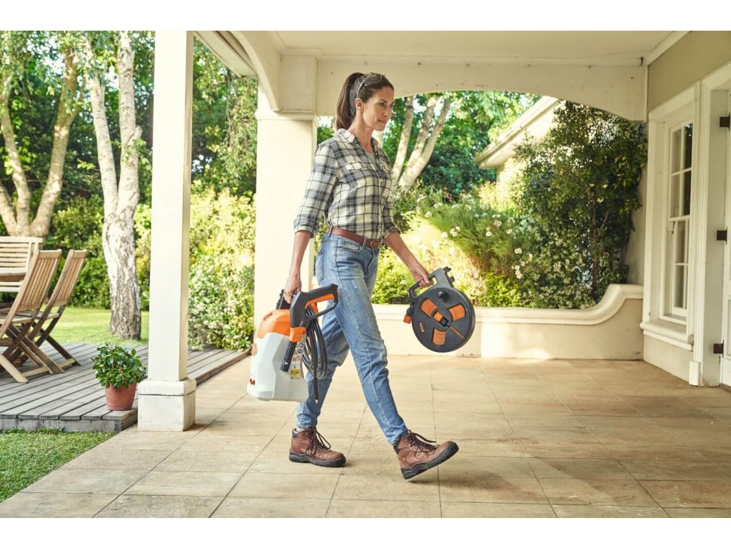 - Ideální pro čištění teras, schodů, zahradního nábytku a jiných menších ploch kolem domu.