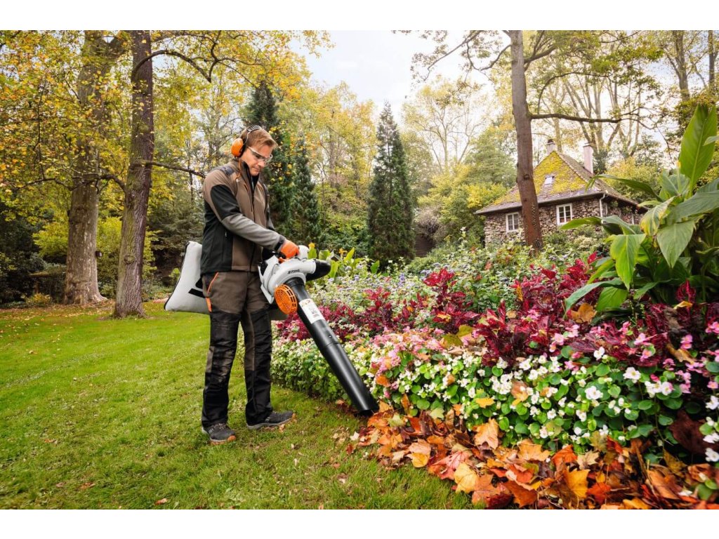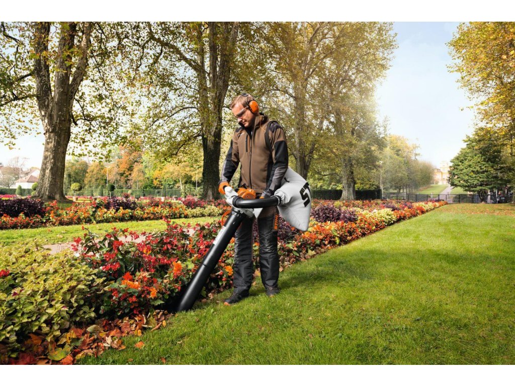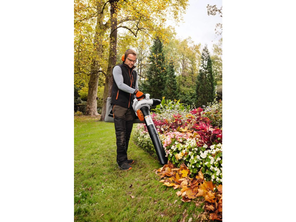 STIHL SH 86 umožňuje nejen foukání, ale také vysávání listí, což je ideální pro plochy, kde je obtížné listí odfouknout. Rozmělňovací hvězdice vyrobená z vysoce kvalitní oceli rozdrtí vysátý materiál na malé kousky, což umožňuje lepší využití 45litrového sběrného vaku.