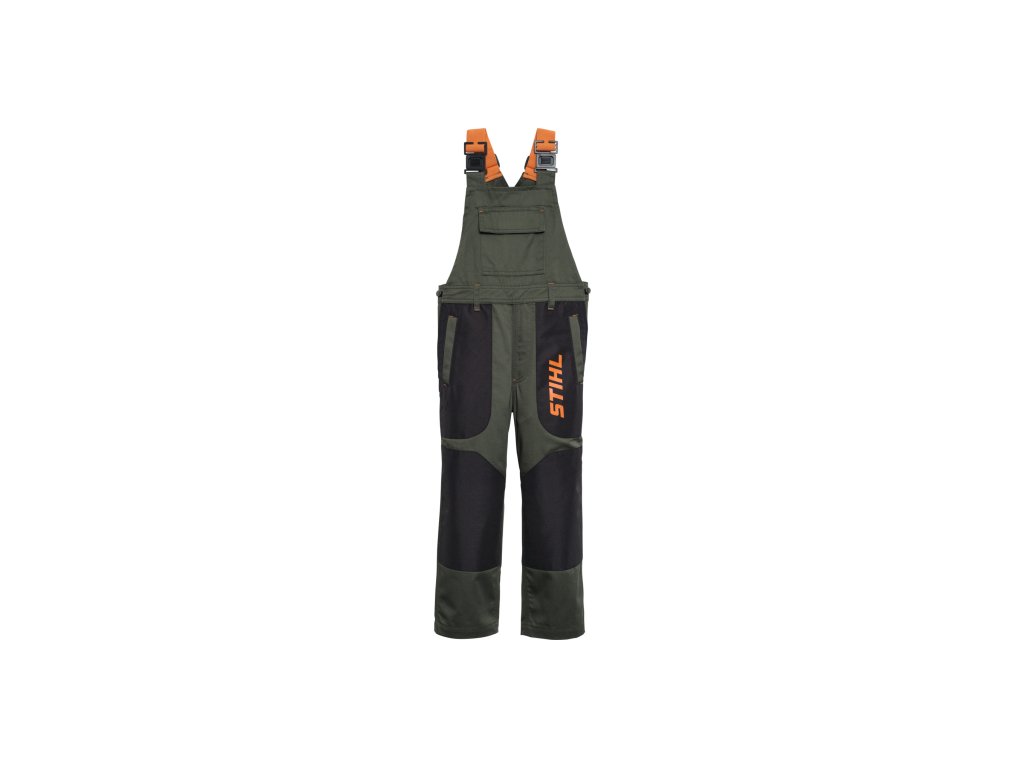 Do těchto odolných zelených kalhot s laclem pohodlně uložíte vše potřebné – od nářadí a šroubků až po sladkosti. Nabízejí množství praktických kapes a díky nastavitelnému pasu a elastické části na zádech skvěle padnou a pohodlně se nosí. Kalhoty mají nastavitelné popruhy a na levém stehně je výrazné oranžové logo STIHL. Vyrobeny jsou ze směsi polyesteru a bavlny, s dvojitou vrstvou látky na kolenou a sedu pro vyšší odolnost.