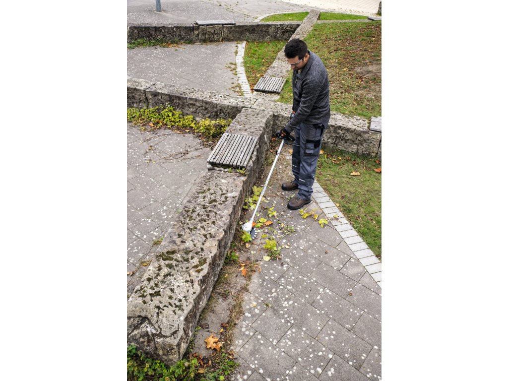 Pro bezpečné ovládání je KMA 135 R vybaven kruhovou rukojetí s omezovačem kroků, který zajišťuje, že vaše nohy zůstanou bezpečně vzdálené od pracovní části zařízení. Tento model je součástí systému STIHL AP, který je určen pro profesionální uživatele a každodenní použití, i za nepříznivých povětrnostních podmínek, například za deště.