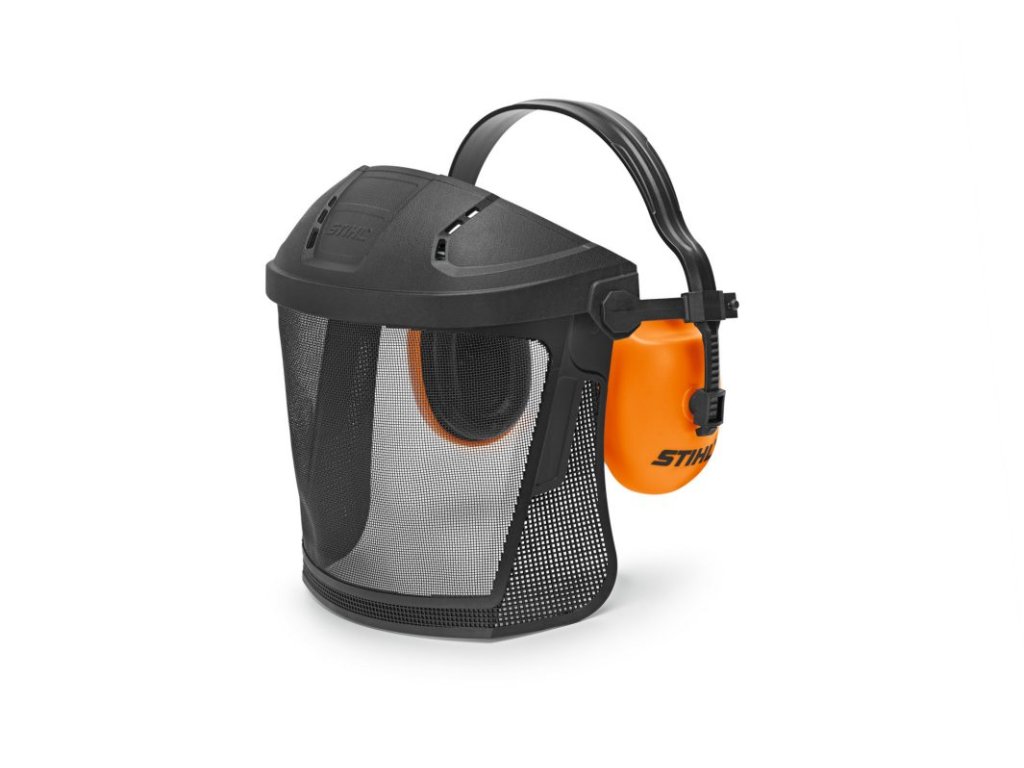 S kombinovanou ochranou obličeje a sluchu získají příležitostní i soukromí uživatelé ochranu obličeje a sluchu, která je účinně ochrání při náročné práci. Lehká kombinace s nastavitelným hlavovým obloukem nabízí vysokou úroveň pohodlí při nošení a dobře se přizpůsobí tvaru vaší hlavy. Ochrana sluchu u modelu STIHL FUNCTION GPA 24 sestává z mušlových chráničů sluchu, které dobře izolují hluk. Výklopná nylonová mřížka (polyamid PA) poskytuje dobrou ochranu obličeje a zároveň umožňuje flexibilní práci.