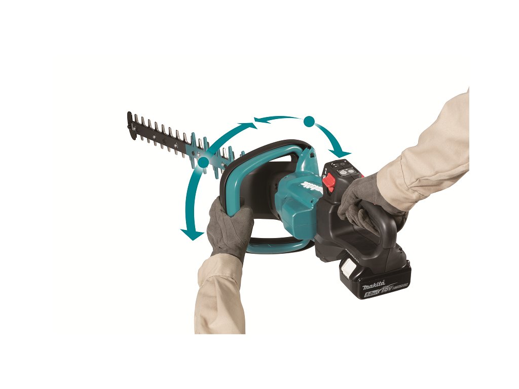 - Speciální tvar nožů umožňující lepší zachycení větví a díky nízkému odporu i výrazně delší chod na jedno nabití akumulátoru