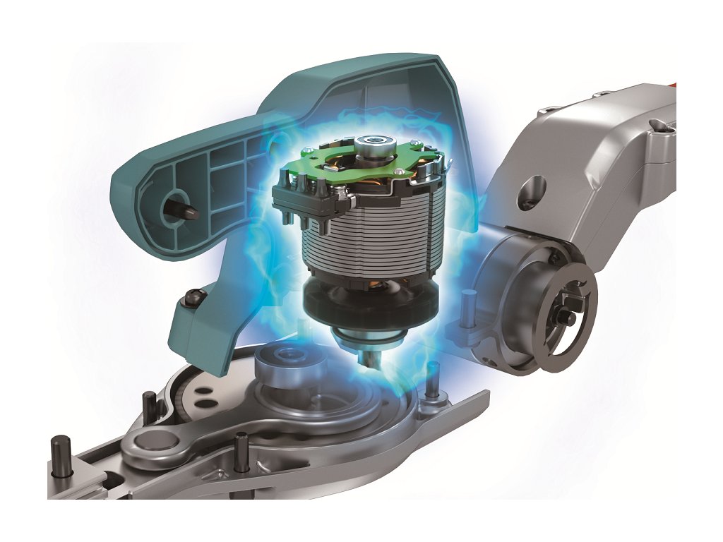 - Speciální tvar nožů umožňující lepší zachycení větví, díky nízkému odporu i výrazně delší chod na jedno nabití akumulátoru a vysokou rychlost řezu