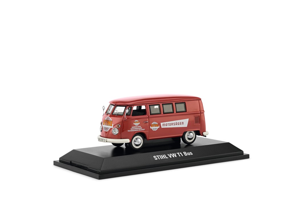 Sběratelský model legendárního VW T1 s dobovým motivem STIHL potěší každého fanouška historických vozidel i značky STIHL. Model je vyroben z těžkého zinkového odlitku a nabarven do autentických dobových barev. Je umístěn na plastovém podstavci a chráněn průhledným plastovým krytem od firmy Schuco. Měřítko modelu je 1:43 – ideální kousek do každé sbírky.