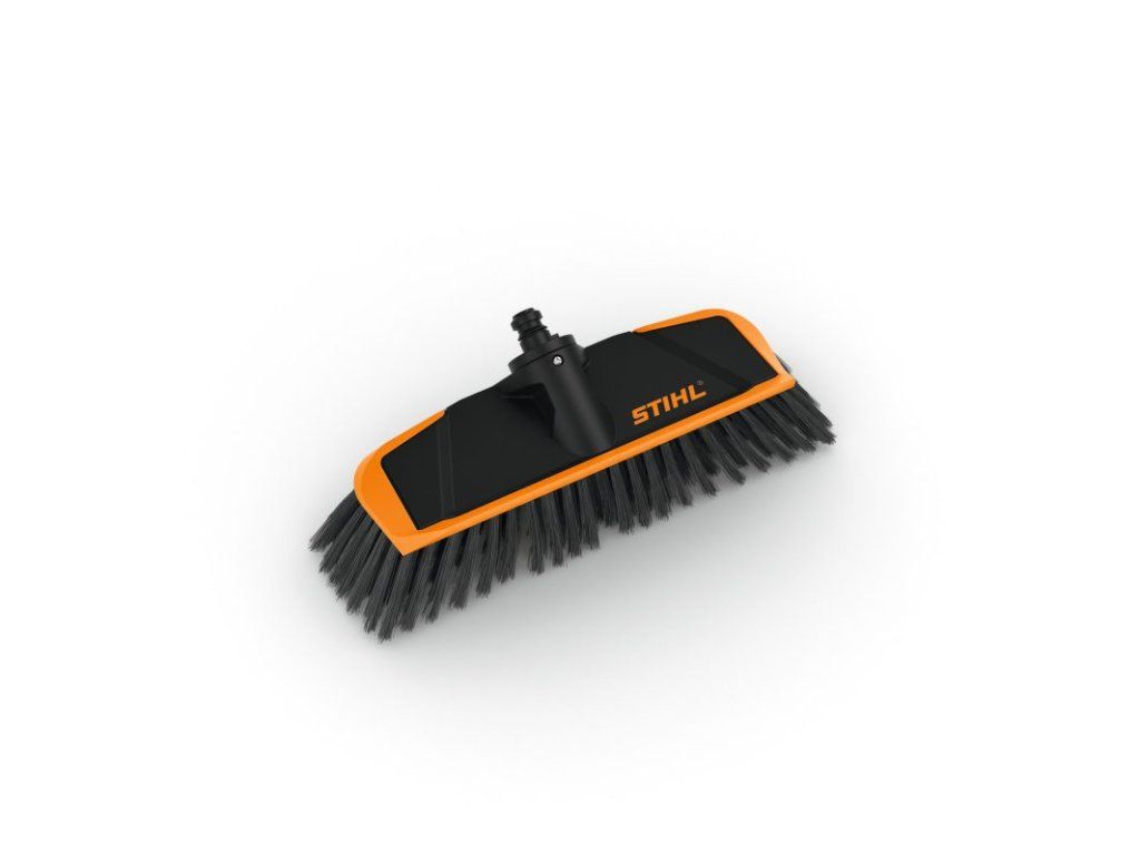 Pomocí mycího kartáče STIHL můžete s elektrickým vysokotlakým čističem STIHL účinně a šetrně čistit povrchy s odolnými nečistotami. Na stříkací trubku je můžete snadno a rychle namontovat prostřednictvím spojky. Integrovaná gumová lišta umožňuje setřít zbytky vody po čištění, takže můžete kartáč použít i k čištění choulostivých povrchů. S mycím kartáčem STIHL s plastovými štětinami a šířkou 285 mm zvládnete úklid prostor kolem domu pohodlně a navíc důkladně. Tento kartáč můžete snadno a rychle nasadit na přímou trysku vysokotlakého čističe a čistit s ním například stěny nebo fasády. Je vhodný pro vysokotlaké čističe STIHL RE 80 až STIHL RE 170 PLUS.