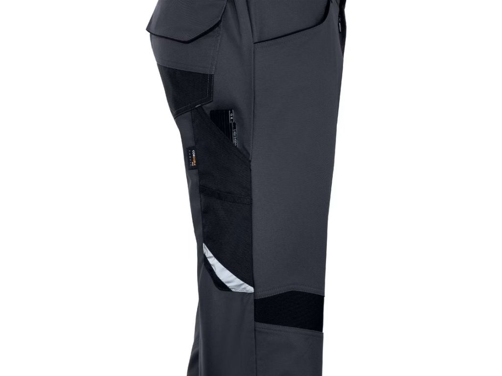 - Dvě zadní kapsy vyztužené materiálem Cordura, stehenní kapsa s velkým objemem a integrovanou přihrádkou na mobilní telefon, kapsa na skládací metr z materiálu Cordura