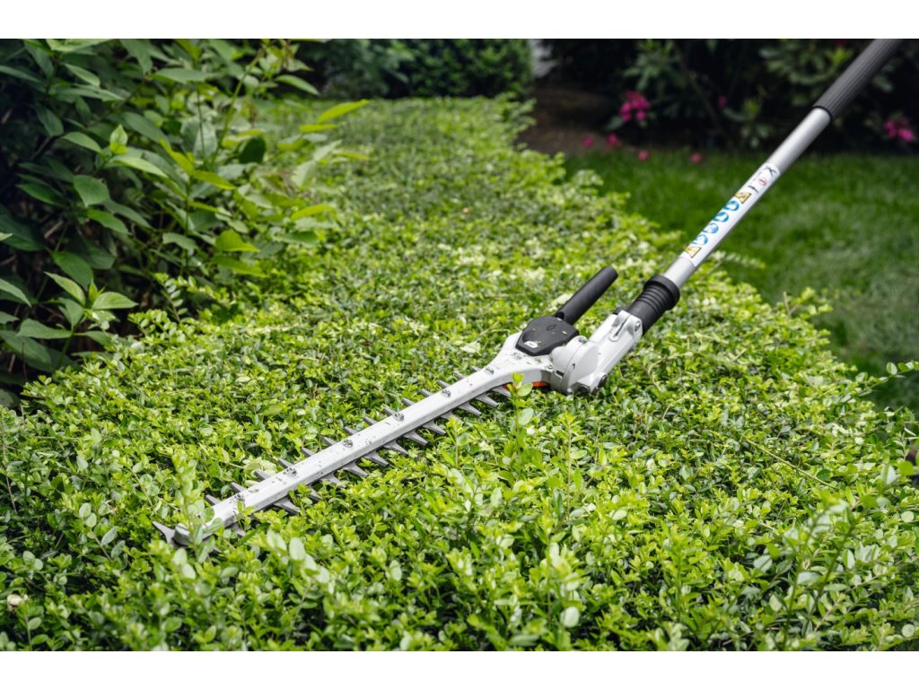 Díky prodloužené rukojeti a nastavitelnému úhlu lišty s noži je tento nástroj ideální pro stříhání vysokých živých plotů, kde umožňuje práci s minimálním úsilím, a to i ve výškách, které by jinak vyžadovaly žebřík nebo jiné pomůcky. Lišta s noži je plynule nastavitelná až do úhlu 145°, což poskytuje uživateli velkou flexibilitu při práci jak na živých plotech, tak i při sečení u země. To znamená, že můžete pohodlně stříhat jak vertikálně, tak horizontálně, a přizpůsobit nástroj různým podmínkám a terénu.