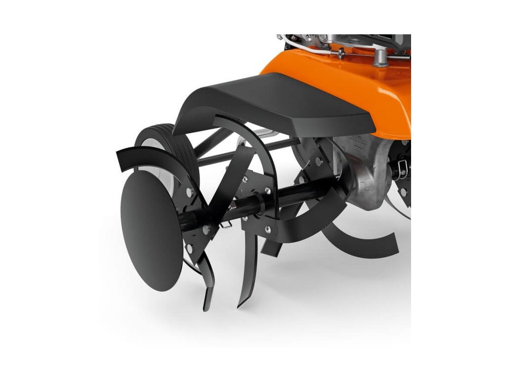- Dělitelná okopávací souprava: Umožňuje snížit pracovní záběr na 60 cm pro práci na úzkých plochách.