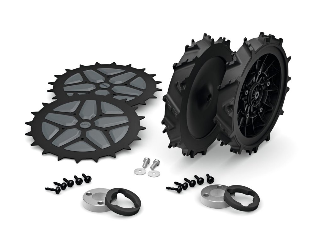 Sada obsahuje trakční kola, kovové hroty a závaží, které společně výrazně rozšiřují možnosti použití vaší sekačky – bez kompromisů.