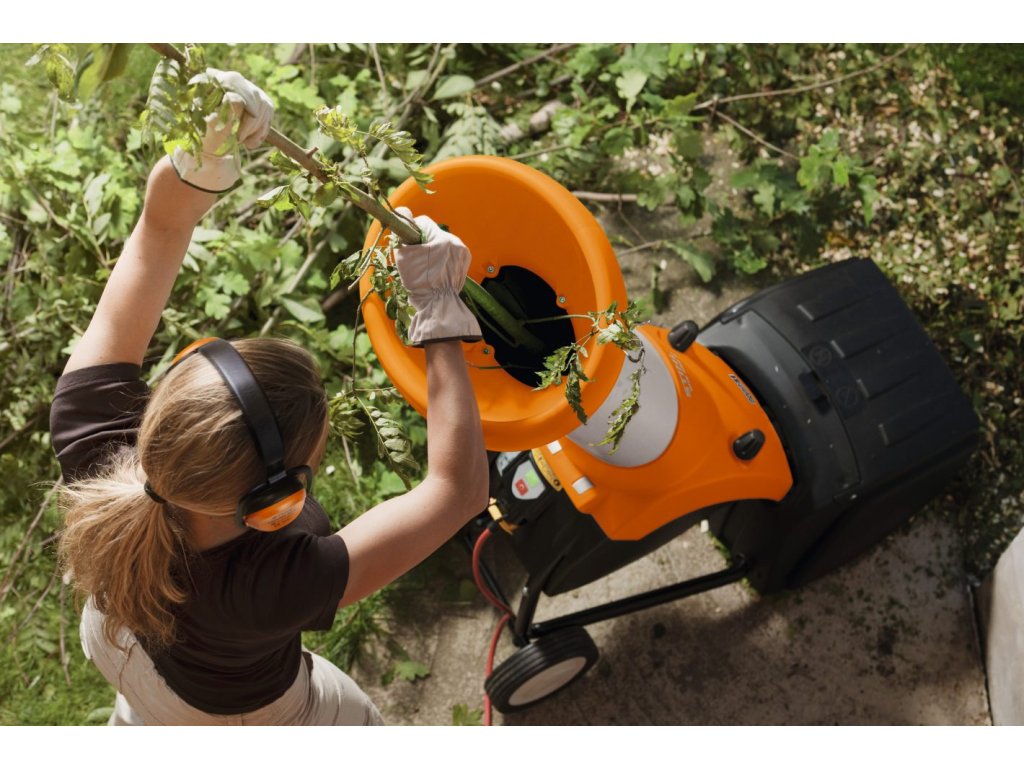 Nožový systém s sendvičovou konstrukcí dokáže efektivně zpracovat i silnější větve a převést je na jemné třísky. Tyto třísky lze následně použít pro kompostování, což vám umožňuje získat výživné hnojivo pro vaši zahradu, ideální pro podporu zdravého růstu rostlin. Pro pohodlný sběr nadrceného materiálu můžete využít volitelný 50litrový koš STIHL AHB 050.